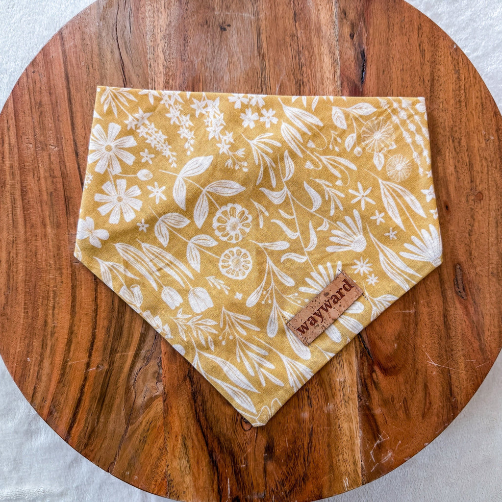 Our bandanas are finished with our signature wayward paws tag. These bandanas are a tie on bandana with a snap to ensure it stays on. Simply tie and snap for the perfect fit.