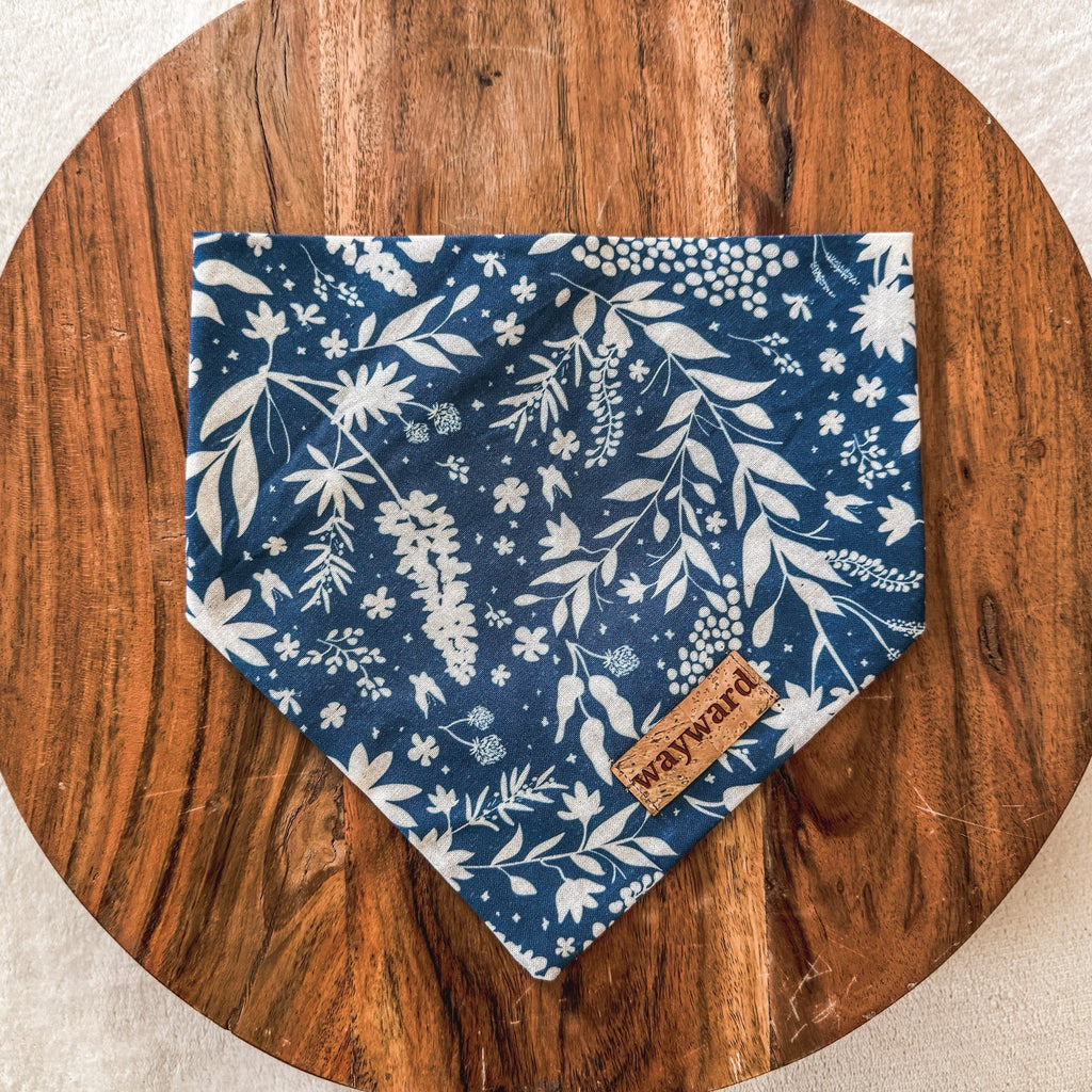 Our bandanas are finished with our signature wayward paws tag. These bandanas are a tie on bandana with a snap to ensure it stays on. Simply tie and snap for the perfect fit.